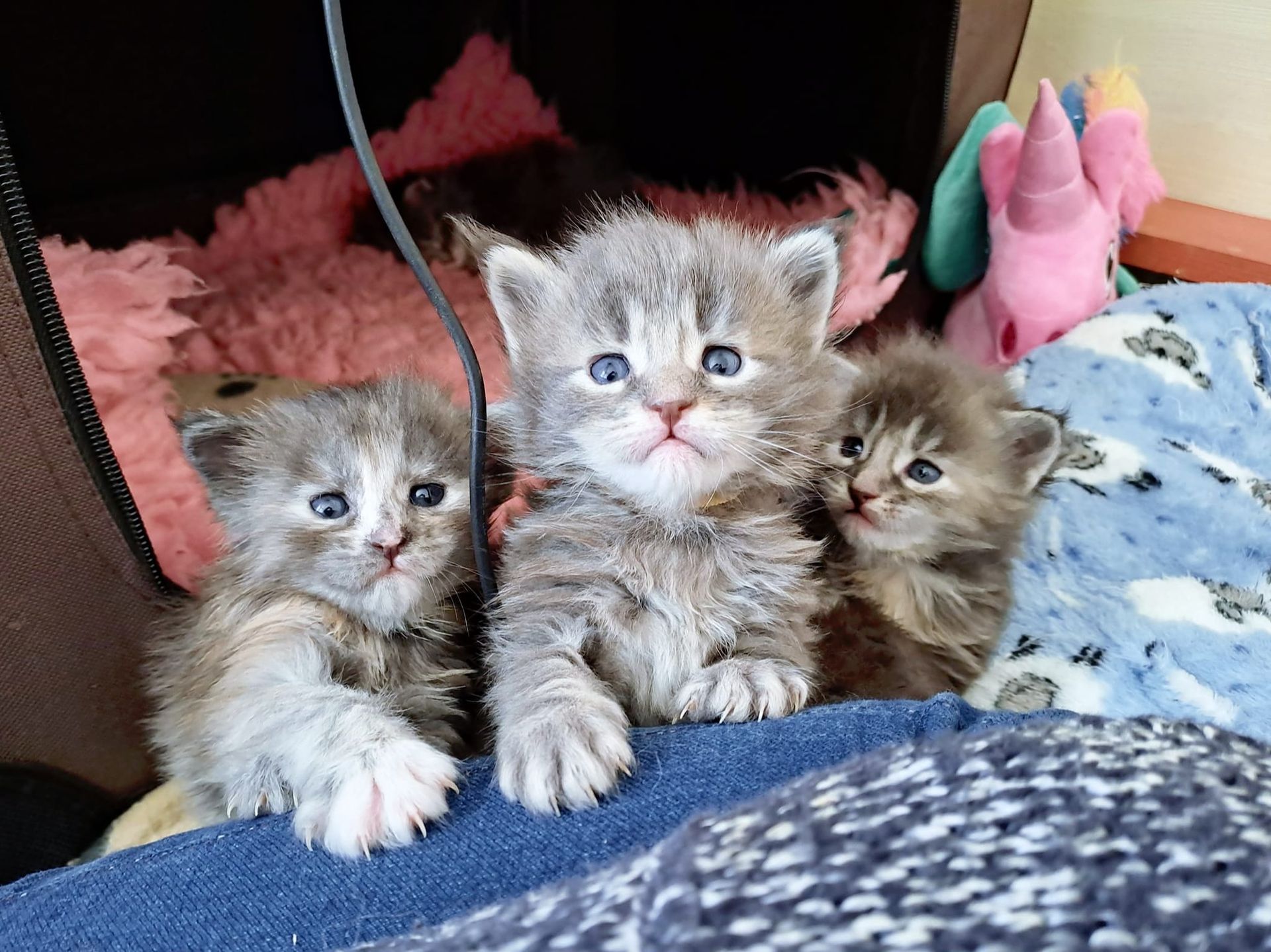 Die 4 Osterkätzinnen und 3 Osterkater sind wohlauf und haben in den ersten 3 Tagen schon mächtig zugenommen.