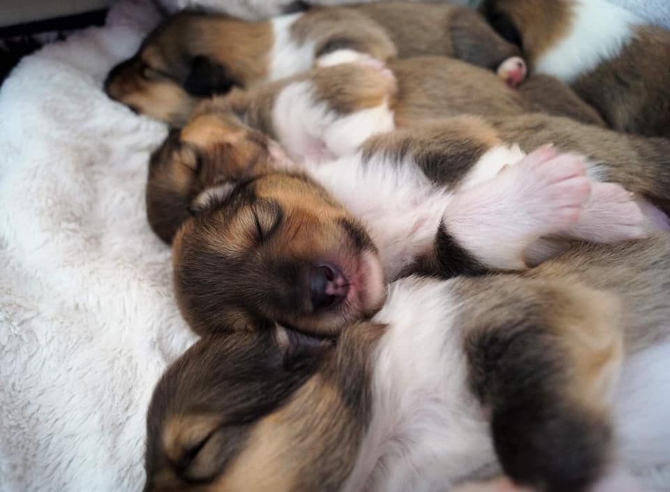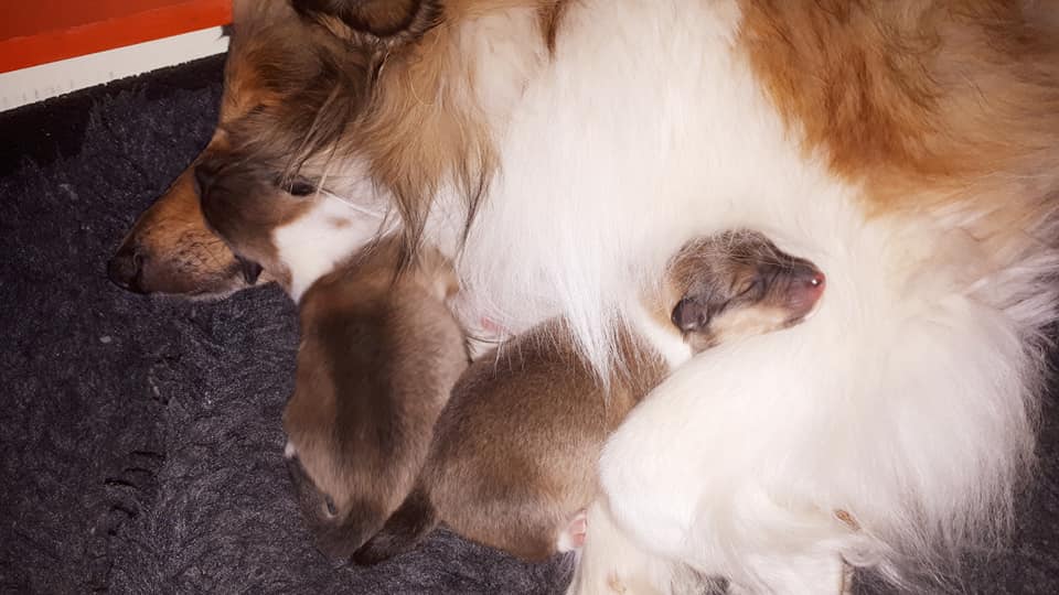 Es war sehr spannend, da auch diesmal im Ultraschall wieder nur 2 Welpen zu sehen waren. Als die ersten beiden Jungs geboren waren, war meine Hoffnung erloschen. Doch dann überraschte mich Daisy und sie gebar völlig komplikationsfrei insgesamt 5 Welpen. Drei Jungs und zwei Mädchen.